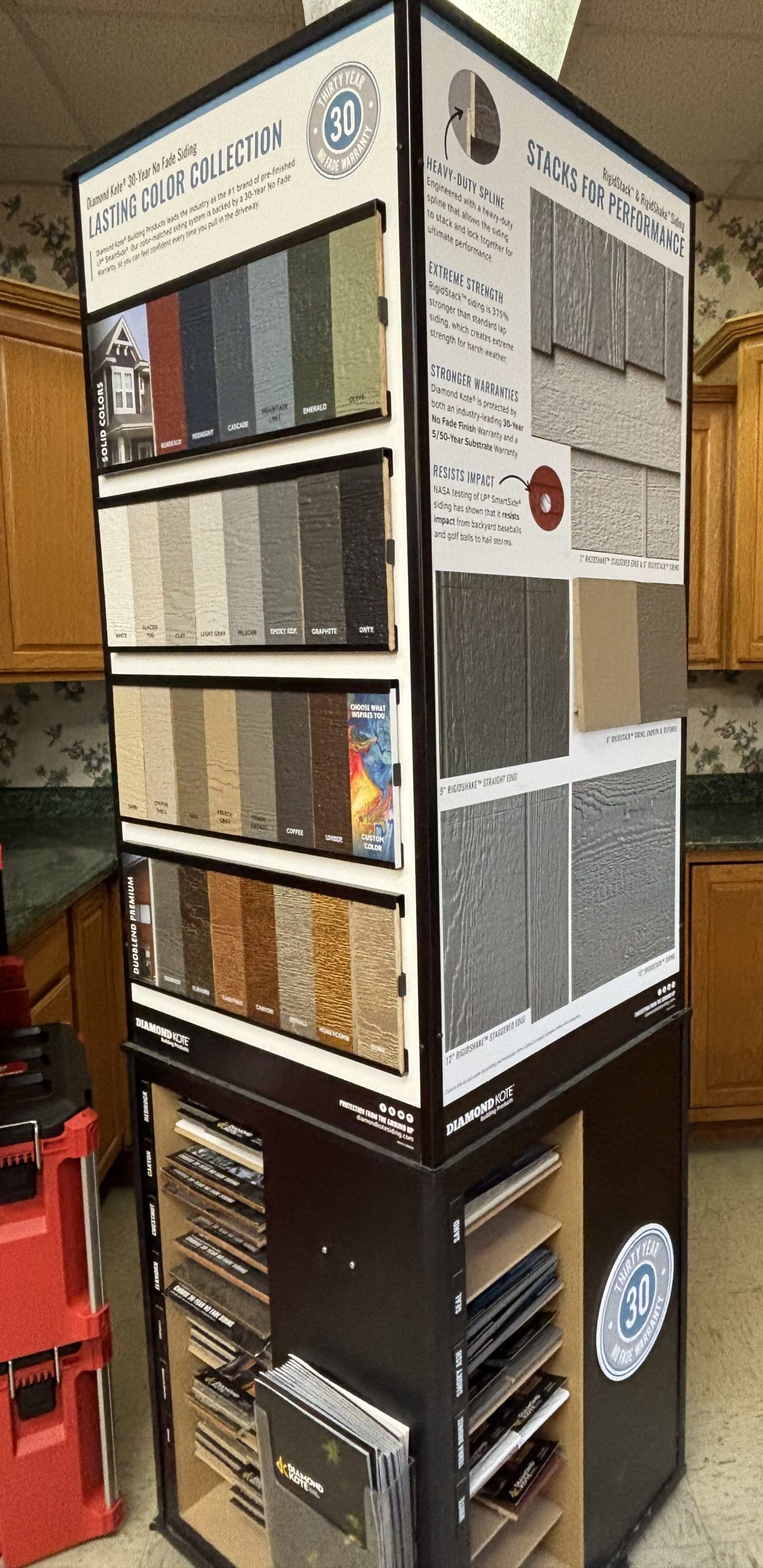 We offer James Hardie for our cement siding selection along with LP, Diamond Kote, and Expert Finish for our OSB siding. Visit our siding page here.