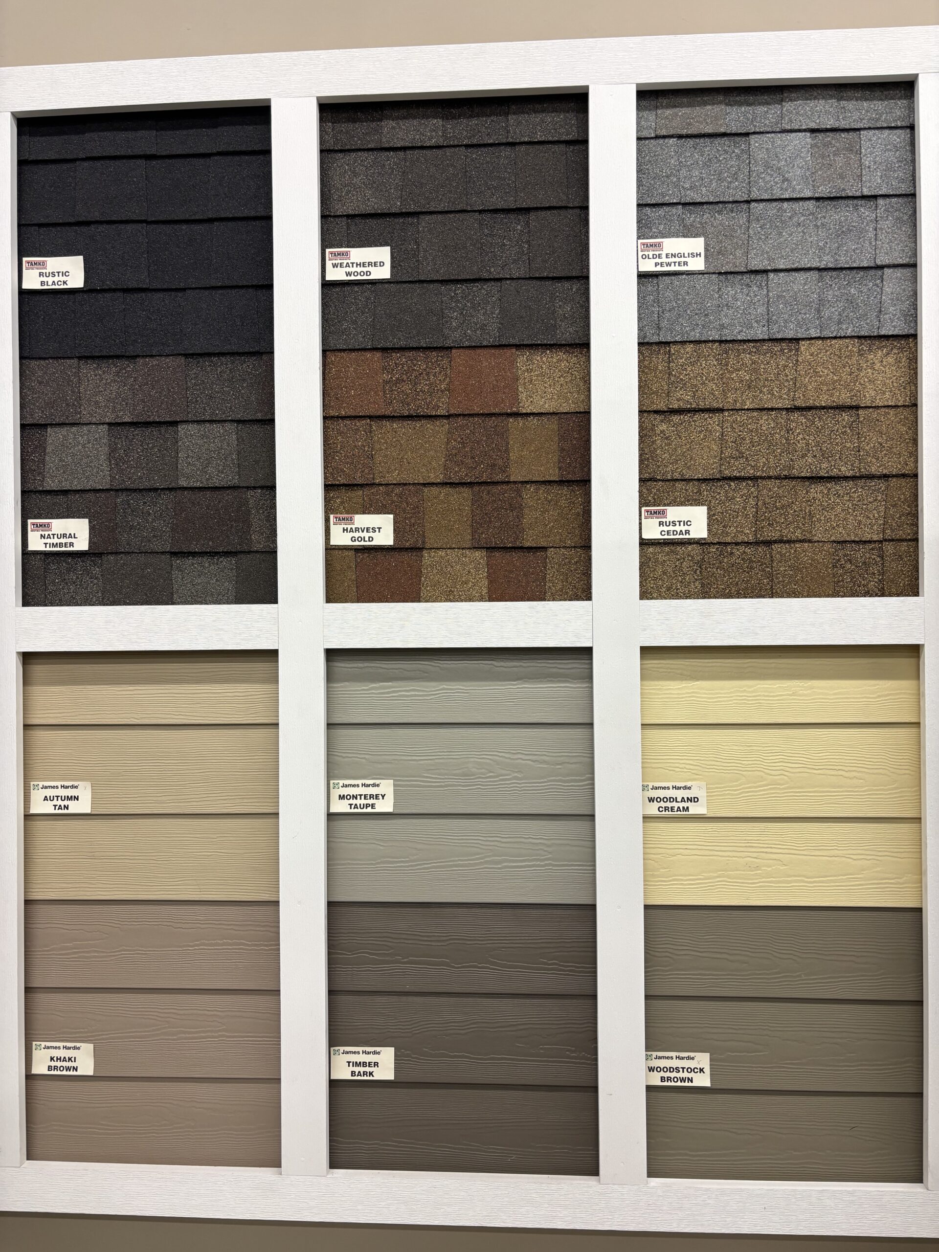 We offer James Hardie for our cement siding selection along with LP, Diamond Kote, and Expert Finish for our OSB siding. Visit our siding page here.