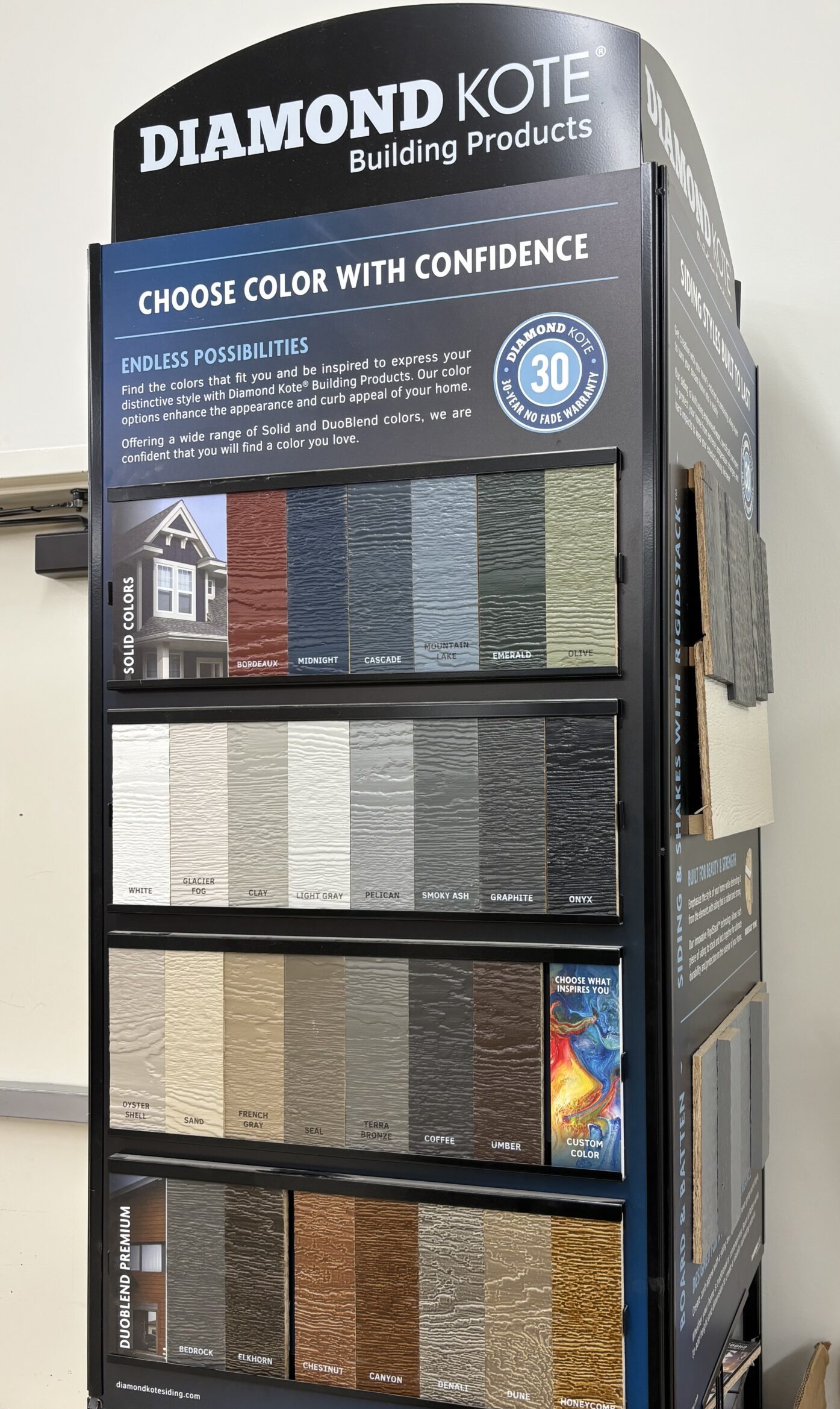 We offer James Hardie for our cement siding selection along with LP, Diamond Kote, and Expert Finish for our OSB siding. Visit our siding page here
